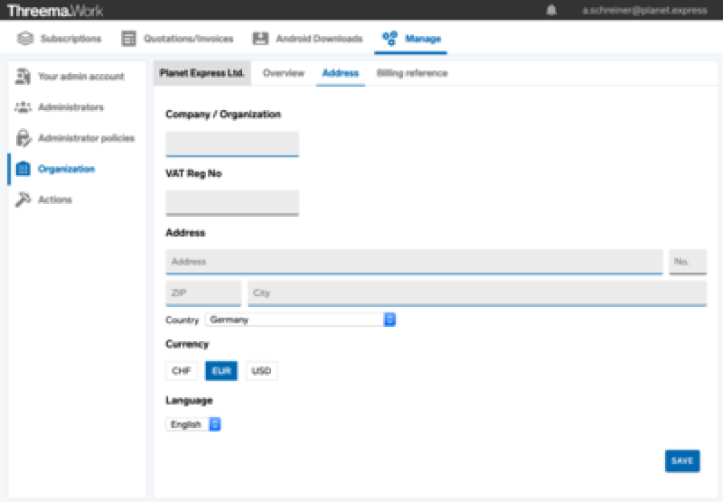 Billing address in the European Union